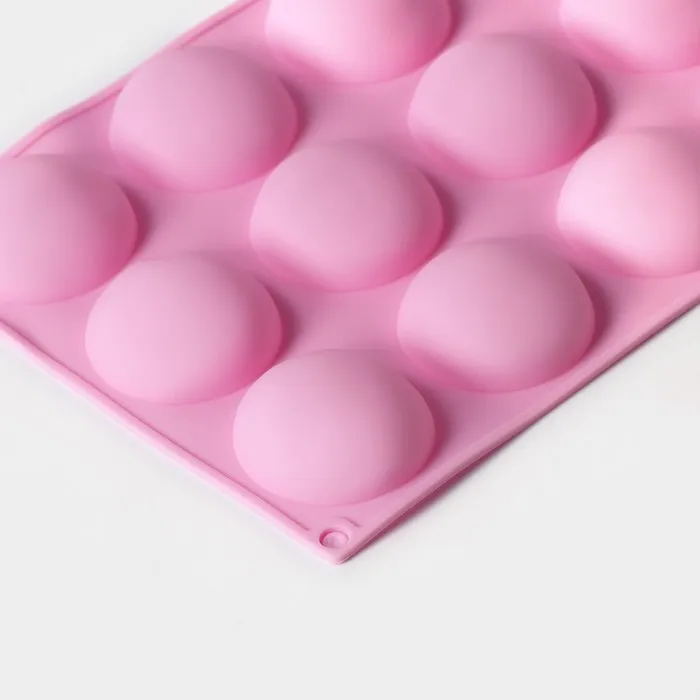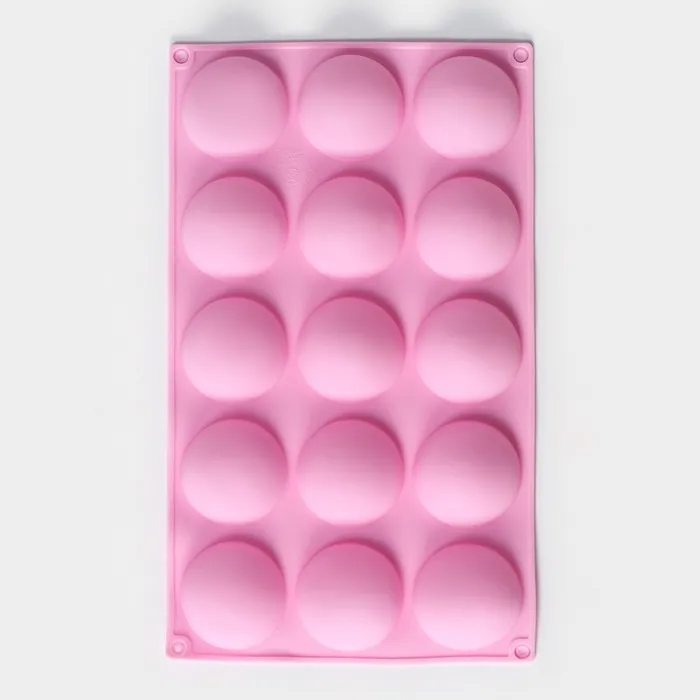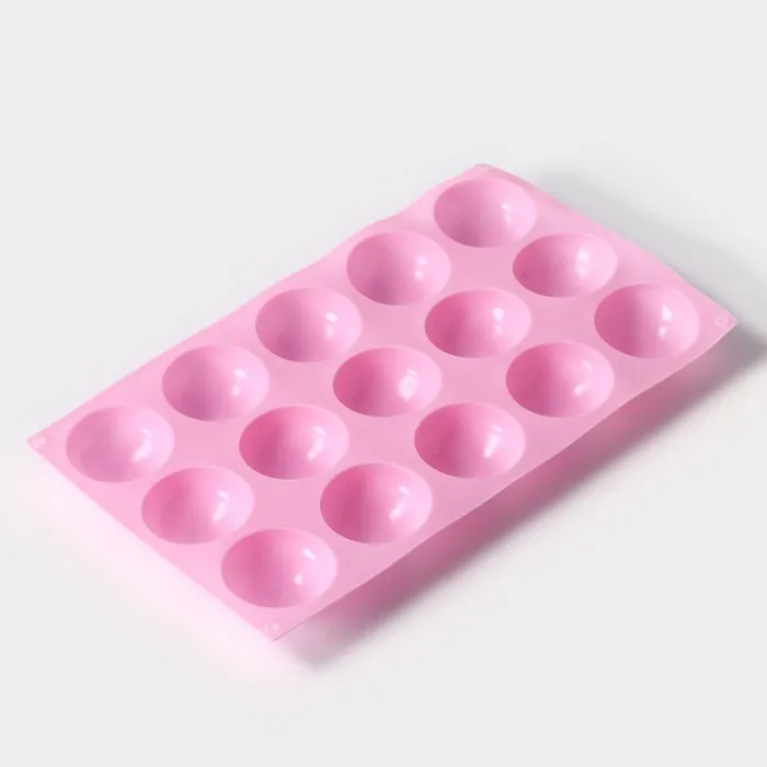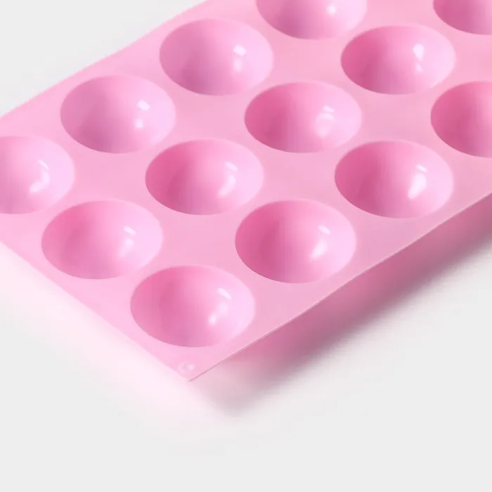Форма для выпечки Доляна «Полусфера», силикон, 28×16,5 см, 15 ячеек (d=4,5 см), цвет розовый — Характеристики
