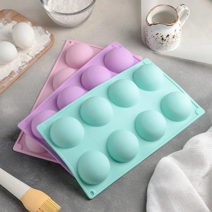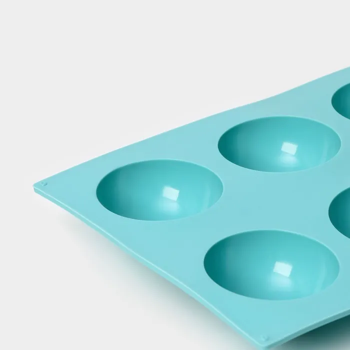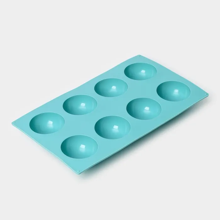 Форма для выпечки Доляна «Полусфера», силикон, 29×17 см, 8 ячеек (d=5.8 см), голубая — Характеристики