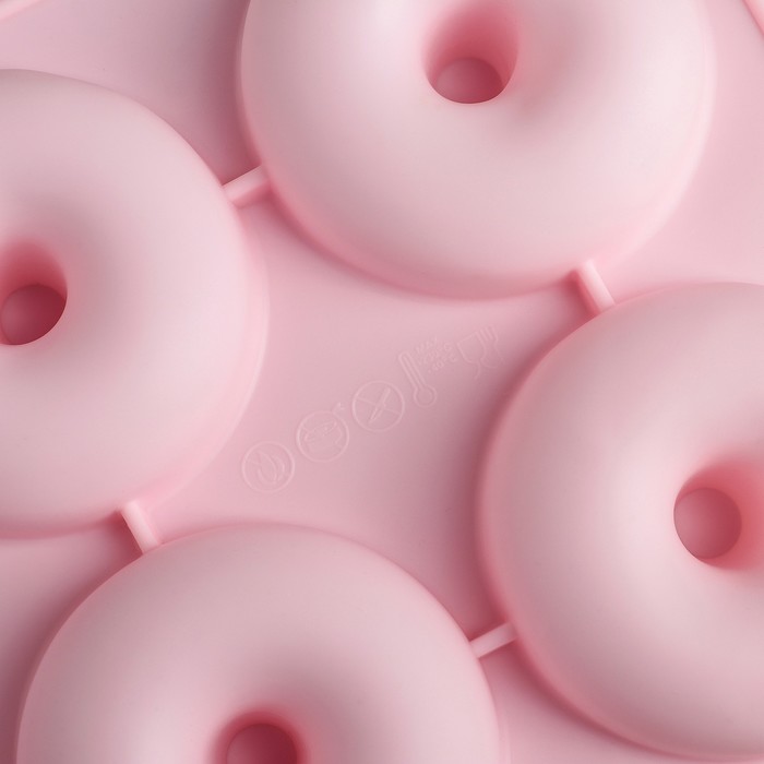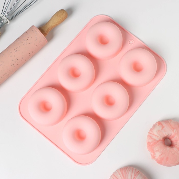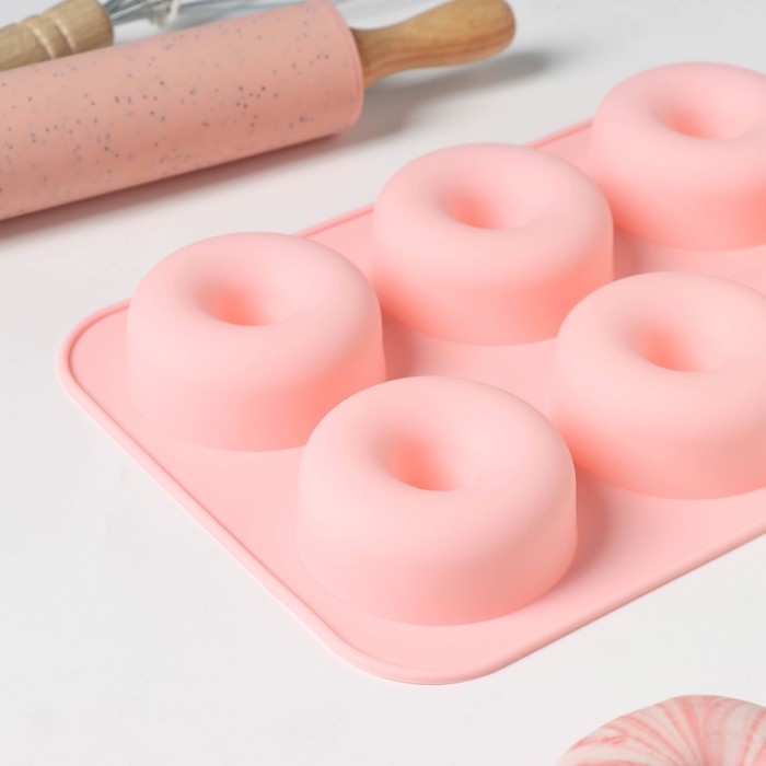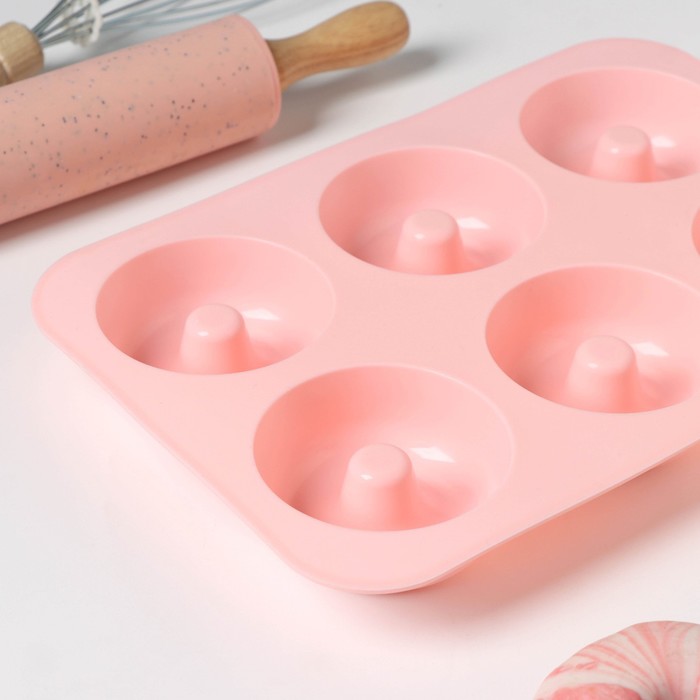 Форма для выпечки Доляна «Пончик», силикон, 26×18 см, 6 ячеек, 7×2.8 см, цвет розовый — Характеристики
