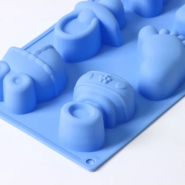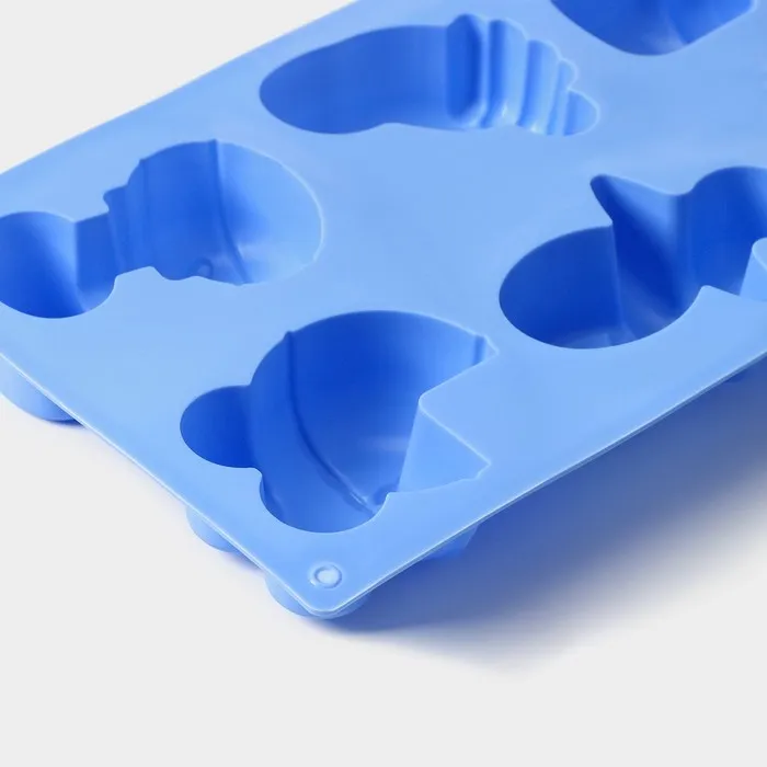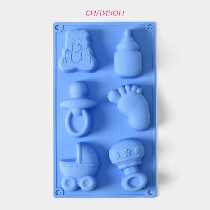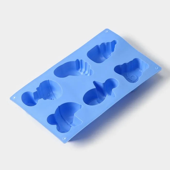 Форма для выпечки Доляна «Праздник.Для новорожденных», силикон, 28.5×16.5 см, 6 ячеек (8×5.7 см), голубая — Характеристики