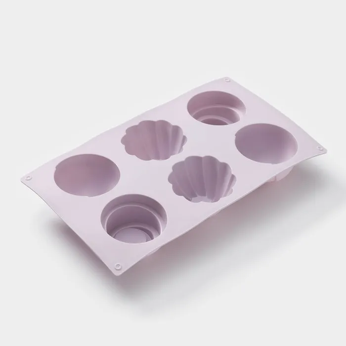Форма для выпечки Доляна «Пудинг», силикон, 6 ячеек, 29.3×17×4.5 см, сиреневая — Характеристики