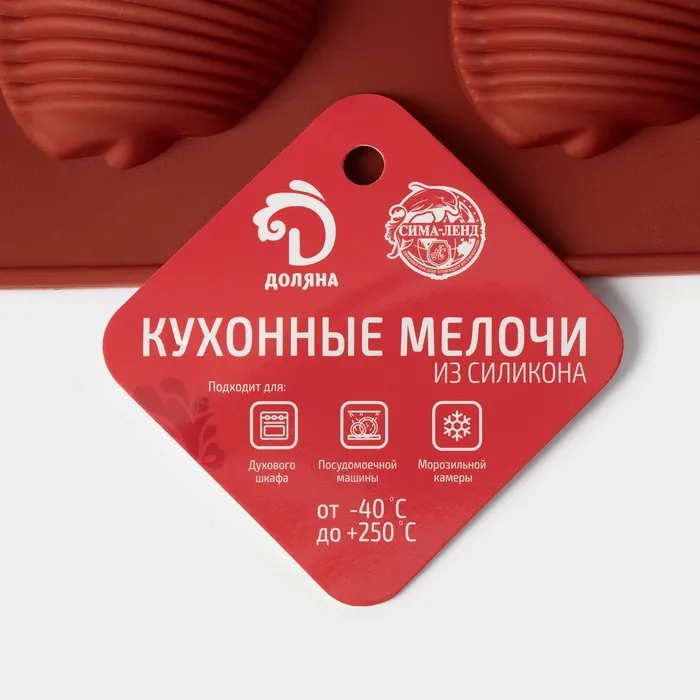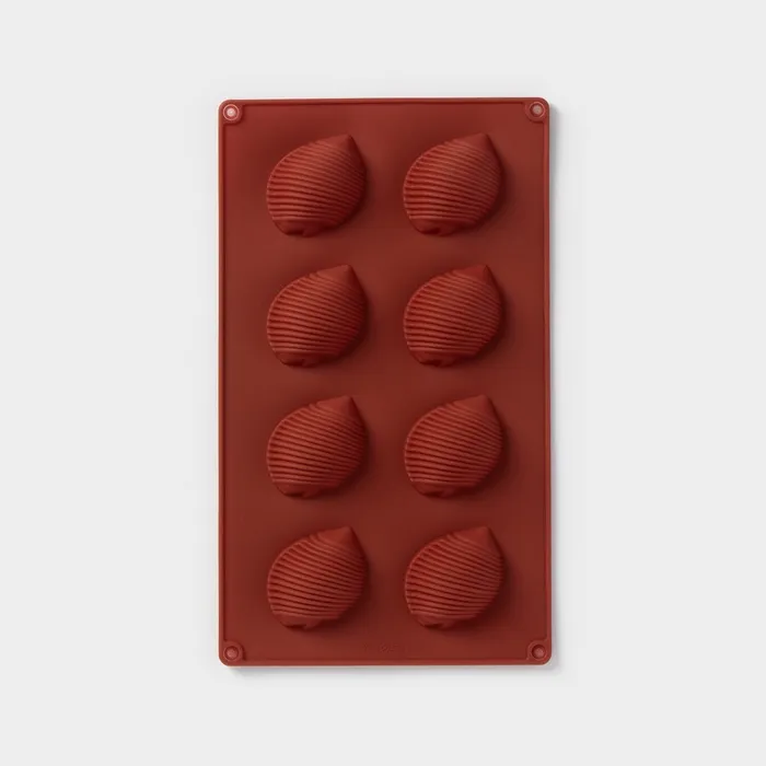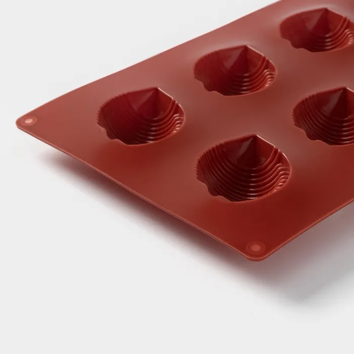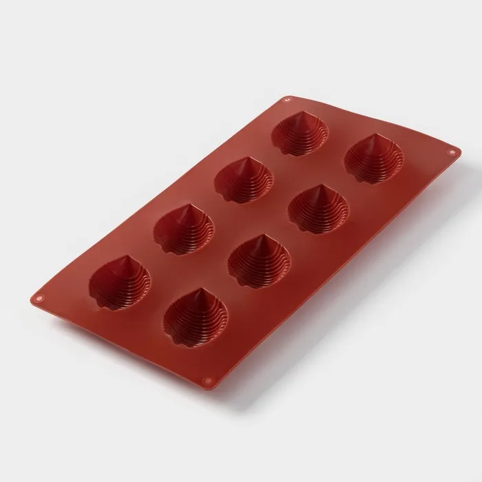 Форма для выпечки Доляна «Ракушка», силикон, 29×17×2 см, 8 ячеек (6×4.5×2 см), коричневая — Характеристики