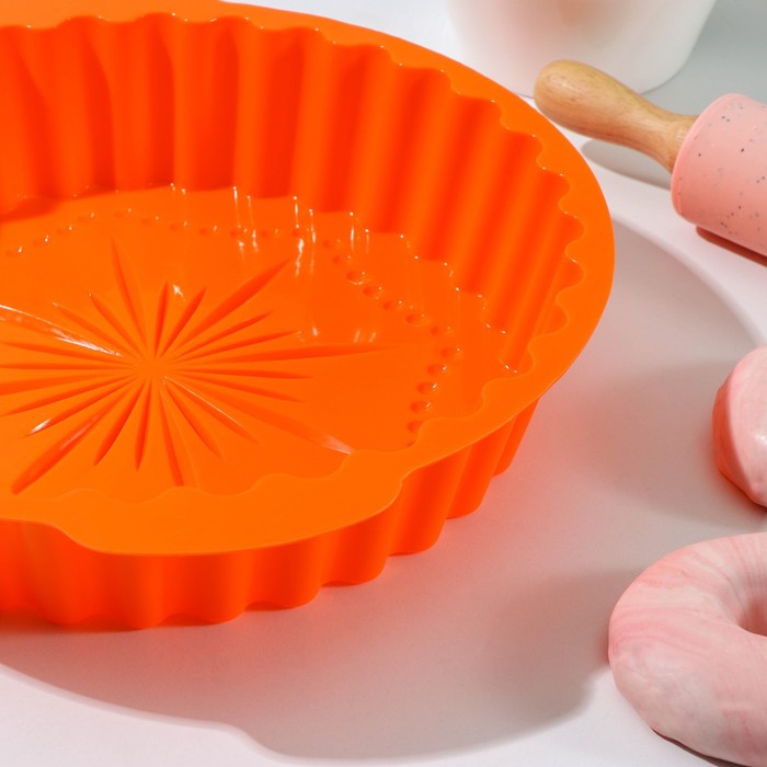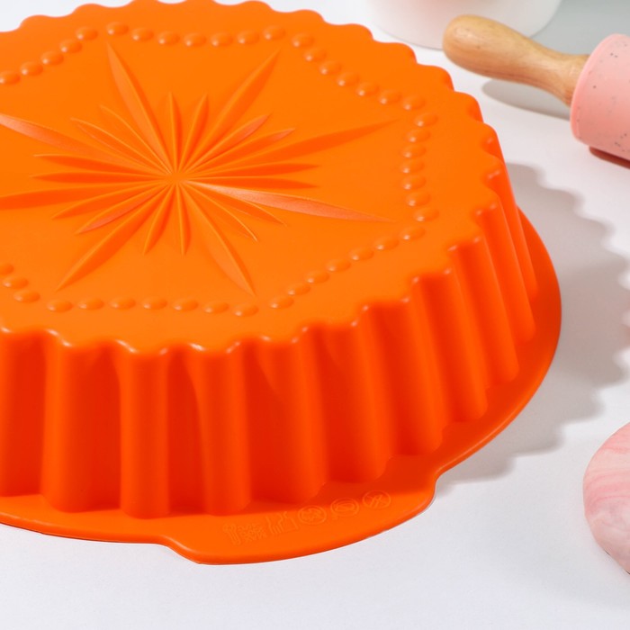 Форма для выпечки Доляна «Рифлёный круг. Звезда», силикон, 28×5.5 см, с ручками, МИКС — Характеристики