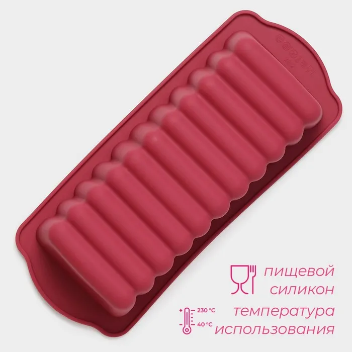 Форма для выпечки Доляна «Рулет», силикон, 27×11×6 см, внутр.размер 22.5×9×6 см, бордовая — Характеристики