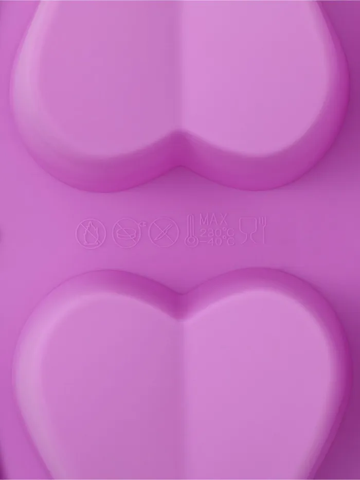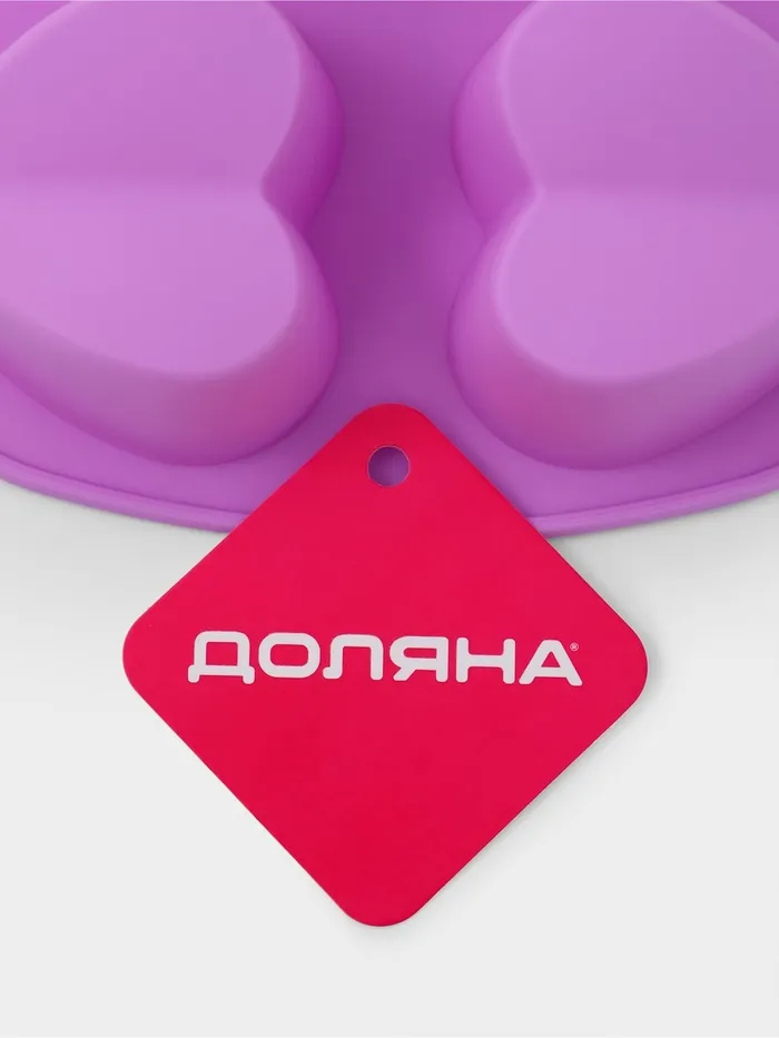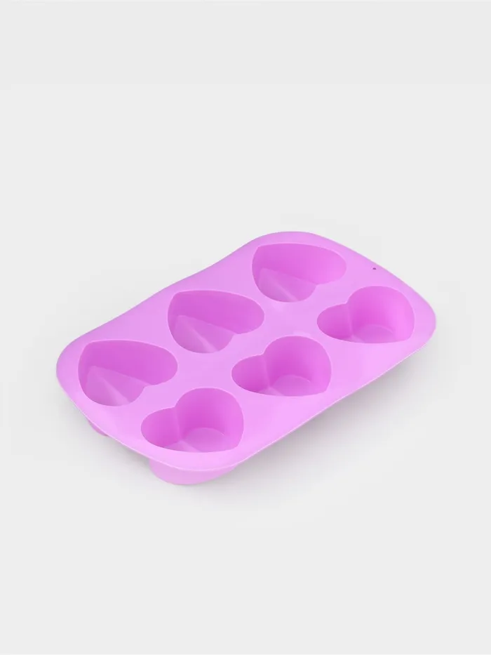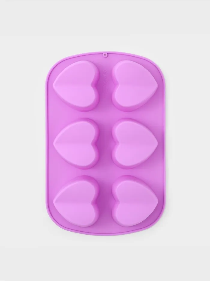 Форма для выпечки Доляна «Сердце напополам», силикон, 25.8×17×3.2 см, 6 ячеек (7×6.5×3 см), сиреневая — Характеристики