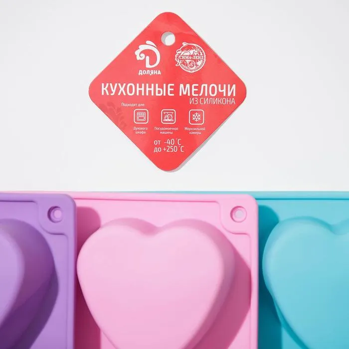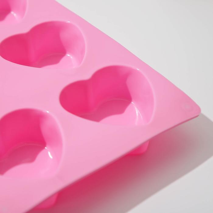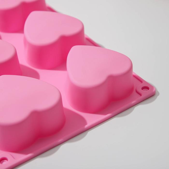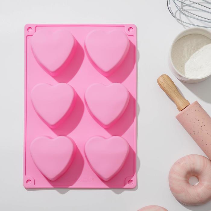 Форма для выпечки Доляна «Сердце», силикон, 26,5×18 см, 6 ячеек, розовая — Характеристики