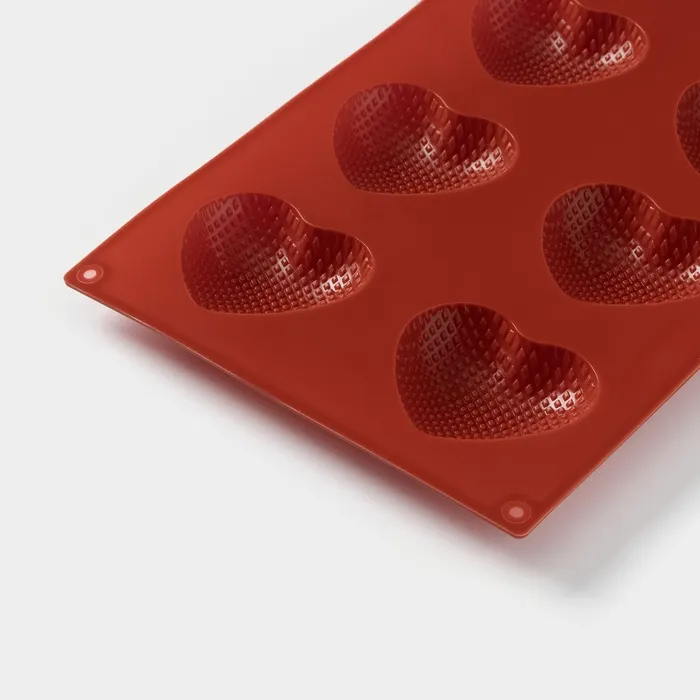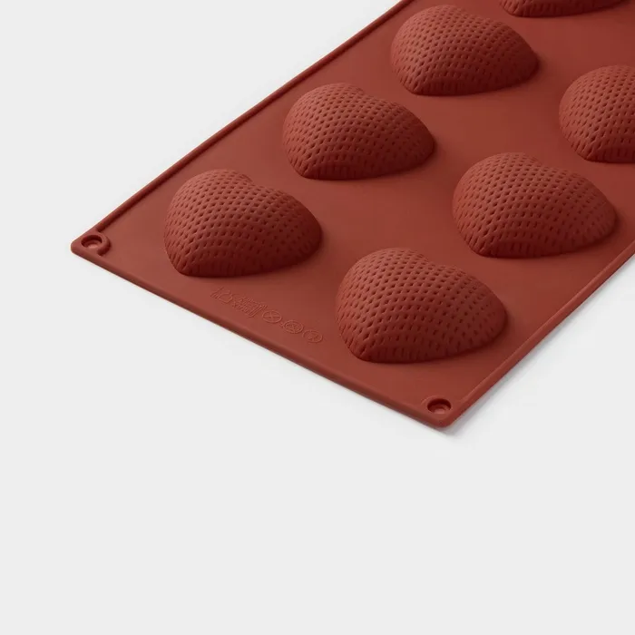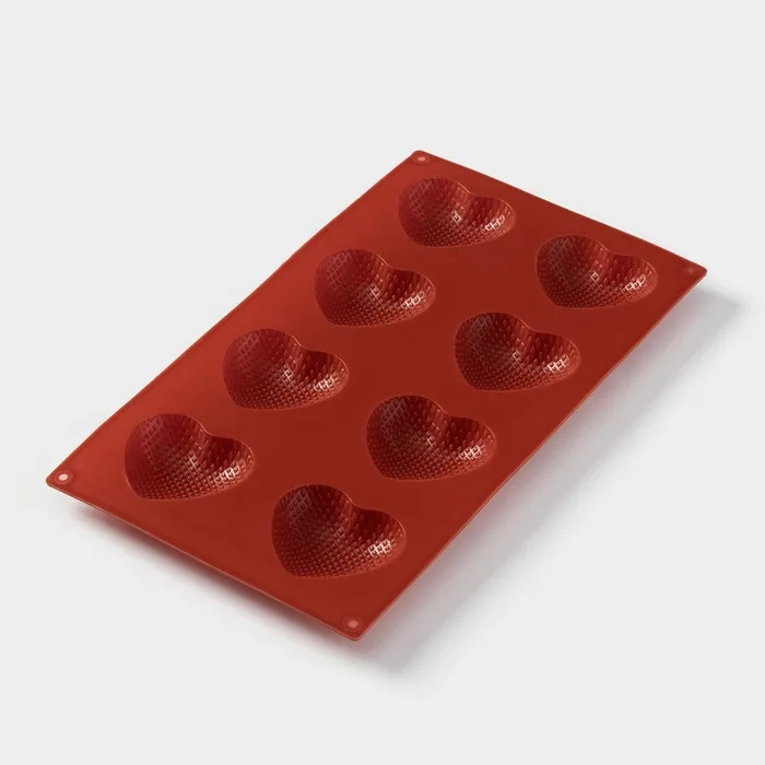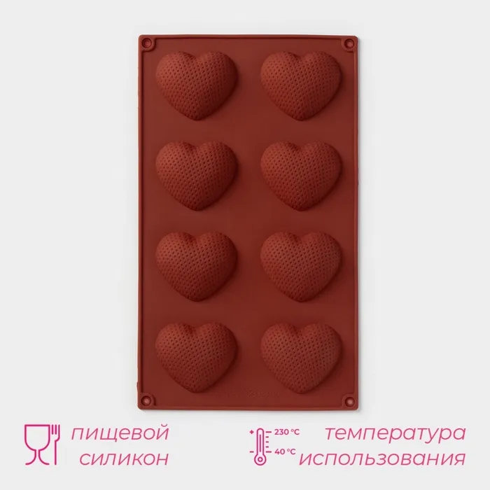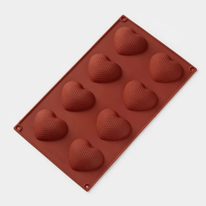 Форма для выпечки Доляна «Сердце», силикон, 29×17×1.5 см, 8 ячеек (6×5×1.5 см), коричневая — Характеристики