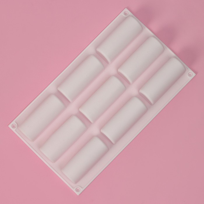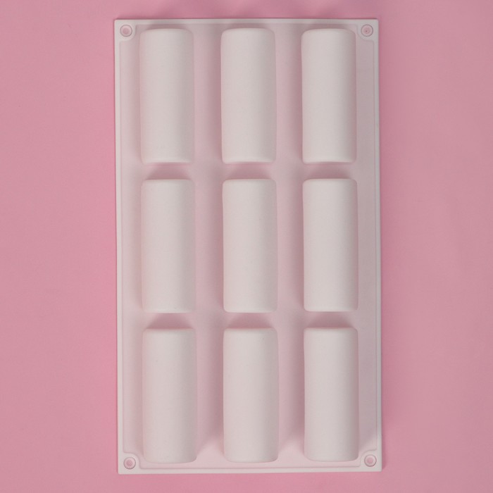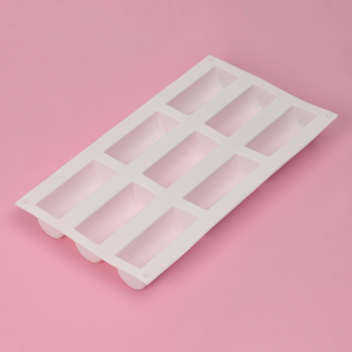 Форма для выпечки Доляна «Сладости. Батончики», силикон, 29,3×17,5×3,5 см, 9 ячеек (8,3×3,2×3,5 см), белая — Характеристики