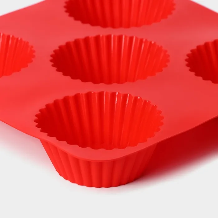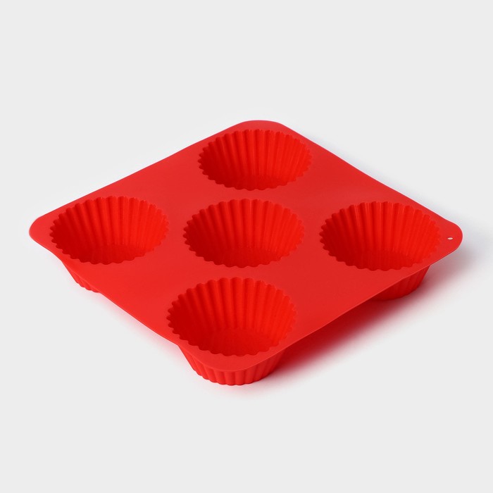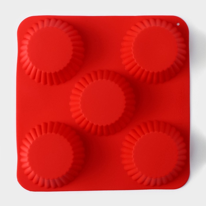 Форма для выпечки Доляна «Сладости. Круг реб», силикон, 18×18 см, 5 ячеек (6.5×6.5×3.5 см), красная — Характеристики