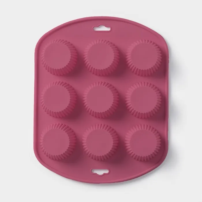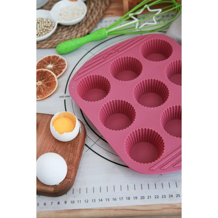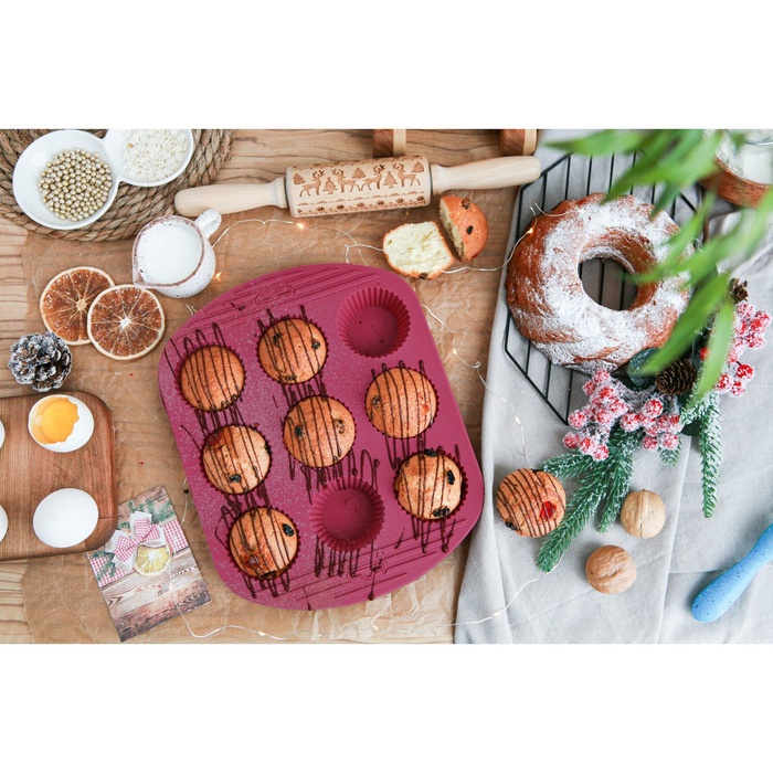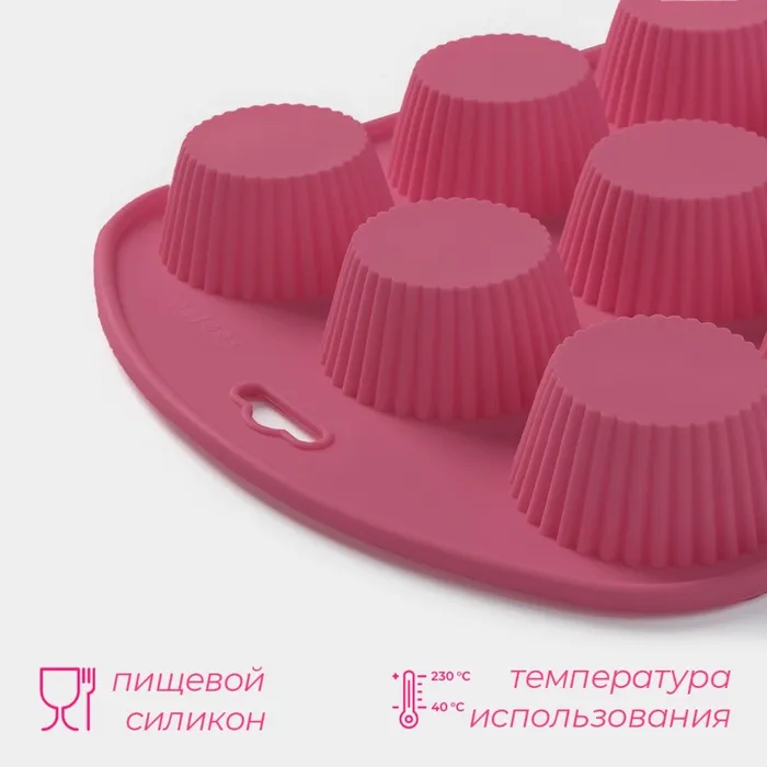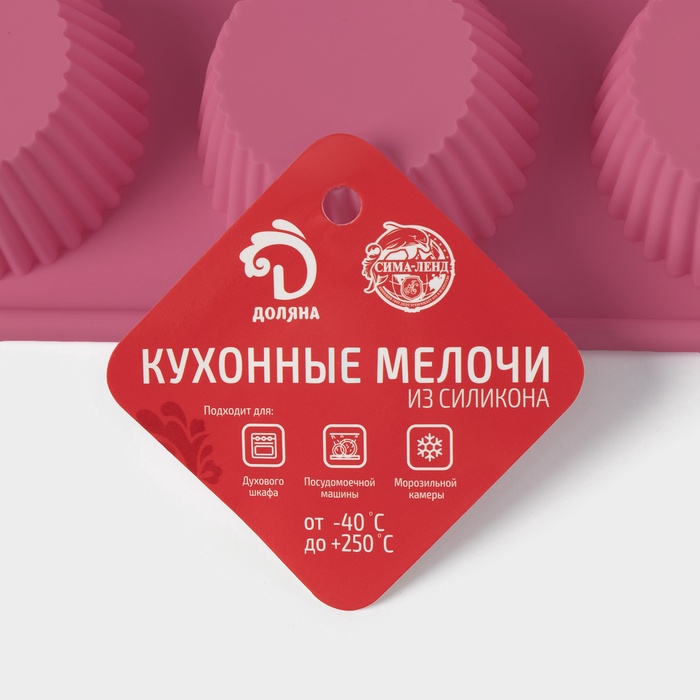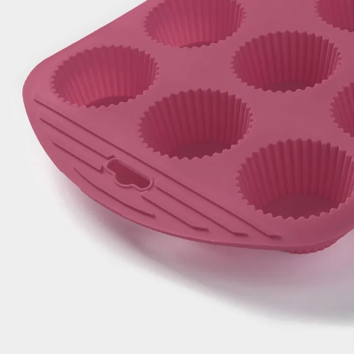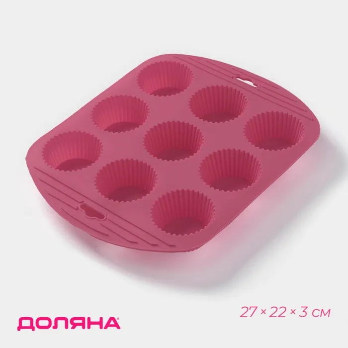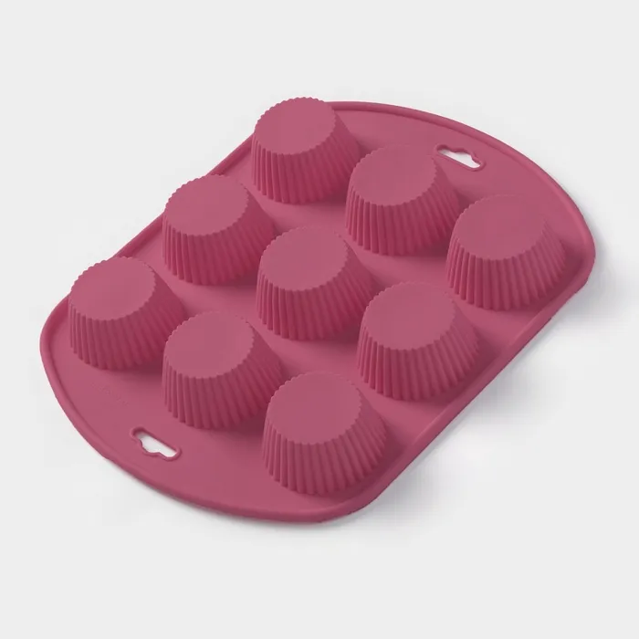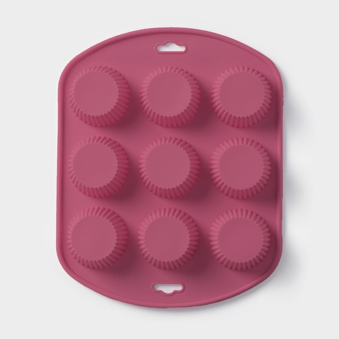 Форма для выпечки Доляна «Сладости. Круг реб», силикон, 27×22×3 см, 9 ячеек (6×6×3 см), бордовая — Характеристики