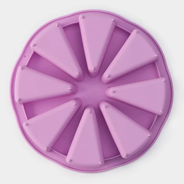 Форма для выпечки Доляна «Сладости. Кусочки торта», силикон, d=26 см, 8 ячеек (9.5×5.8 см), сиреневая — Характеристики