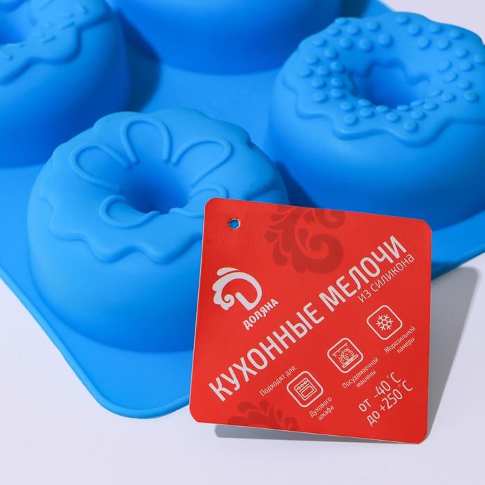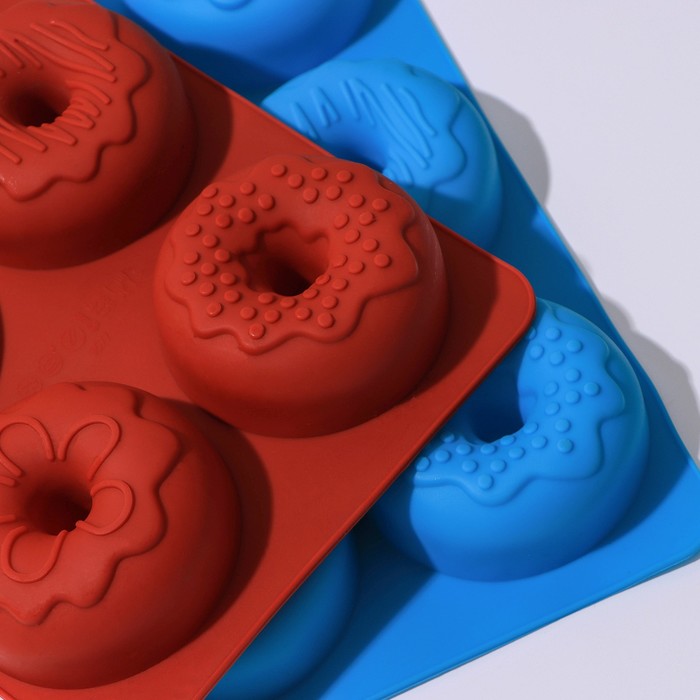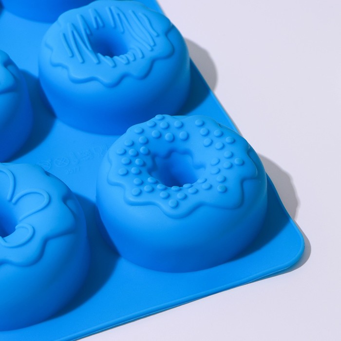 Форма для выпечки Доляна «Сладости. Пончики в глазури», силикон, 27.2×16.4×3.2 см, 6 ячеек, цвет МИКС — Характеристики