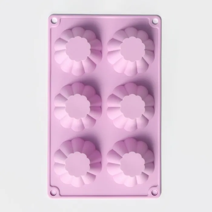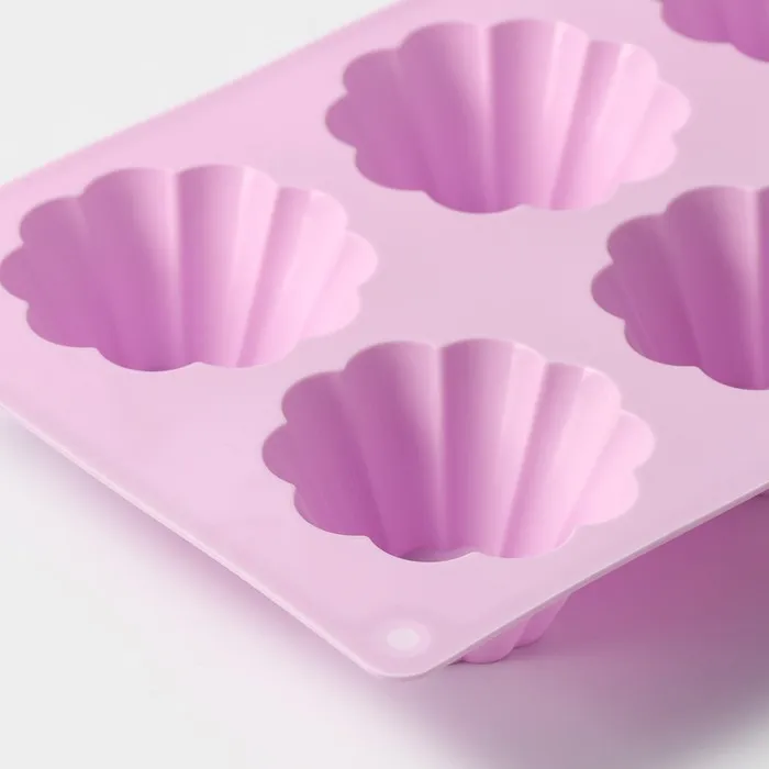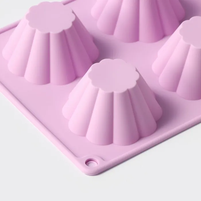 Форма для выпечки Доляна «Сладости. Пудинг», силикон, 29.5×17.5 см, 6 ячеек (7.7×4 см), сиреневая — Характеристики