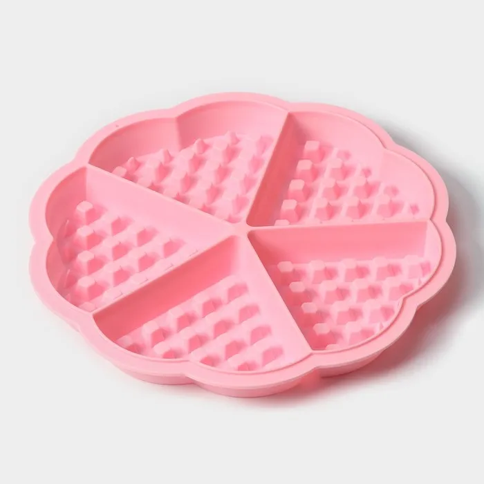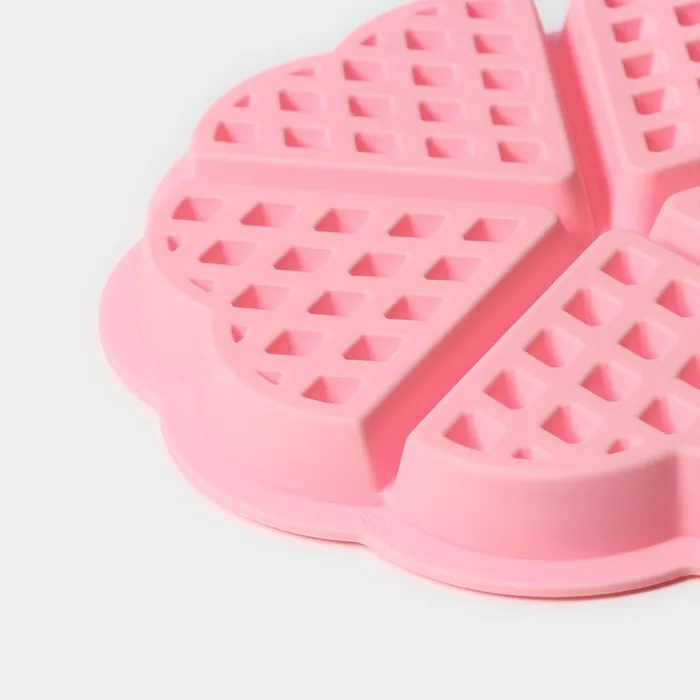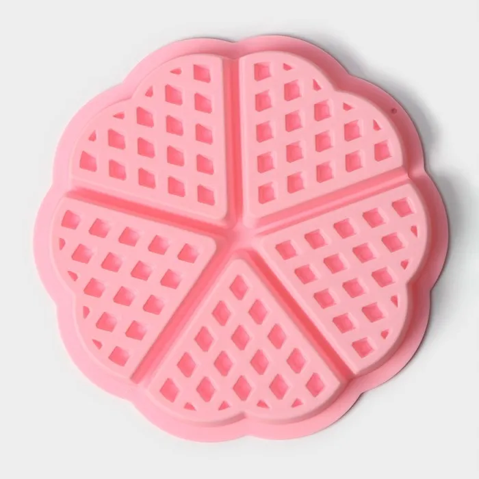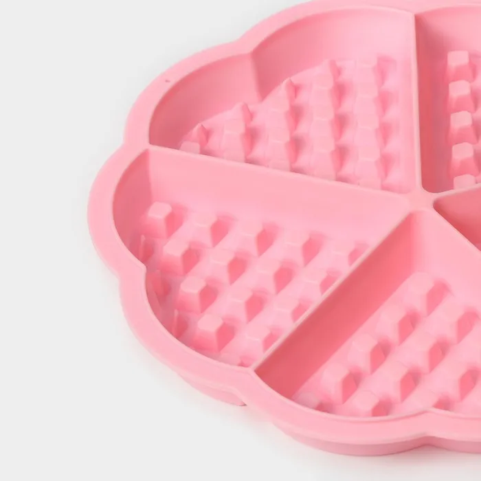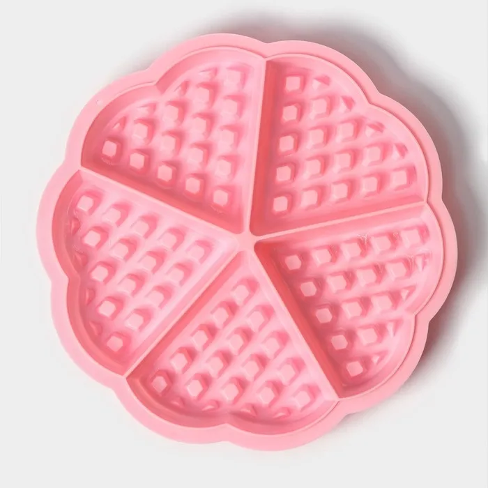 Форма для выпечки Доляна «Сладости. Венские вафли сердце», силикон, 21×2 см, 5 ячеек, розовая — Характеристики