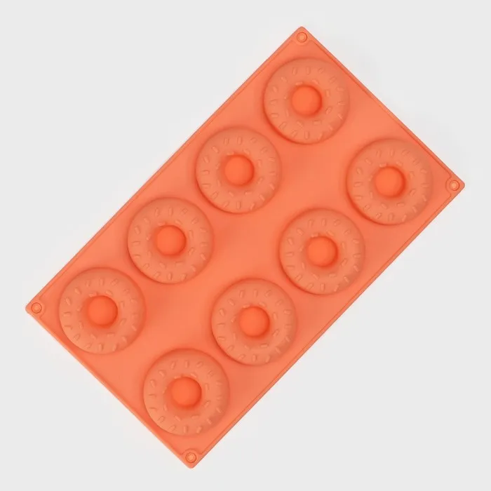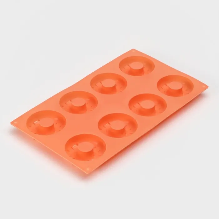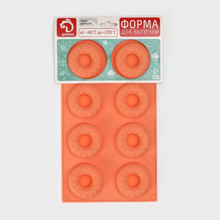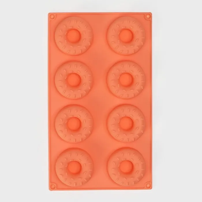 Форма для выпечки Доляна «Сладости.Пончики с кунжутом», силикон, 28.5×17 см, 8 ячеек (d=6.3 см), оранжевая — Характеристики
