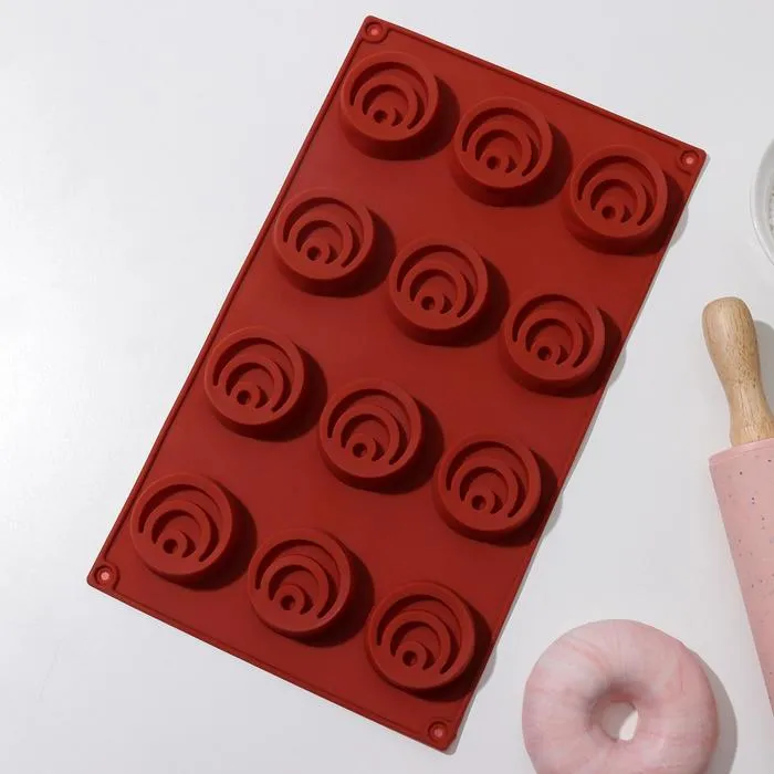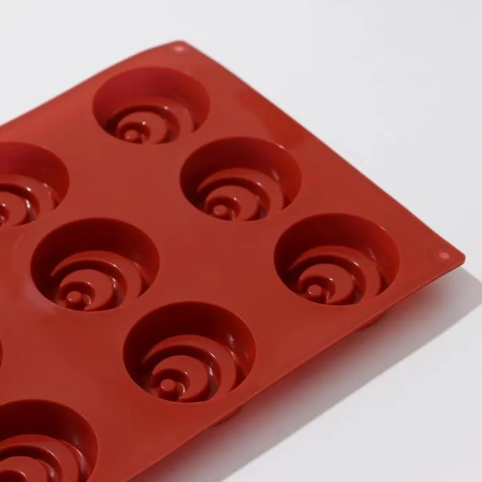 Форма для выпечки Доляна «Восход», силикон, 12 ячеек, 29×17×2 см, ячейка 4,7 см, глубина 1,7 см, цвет коричневая — Характеристики