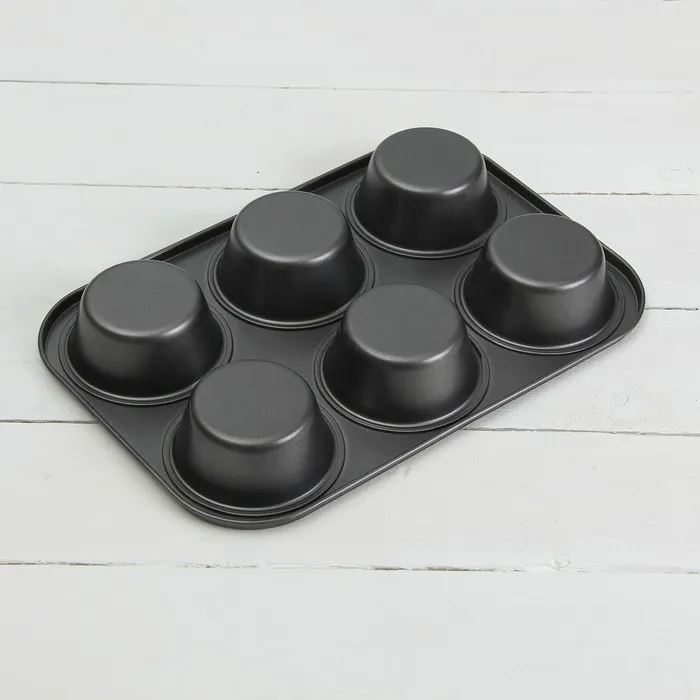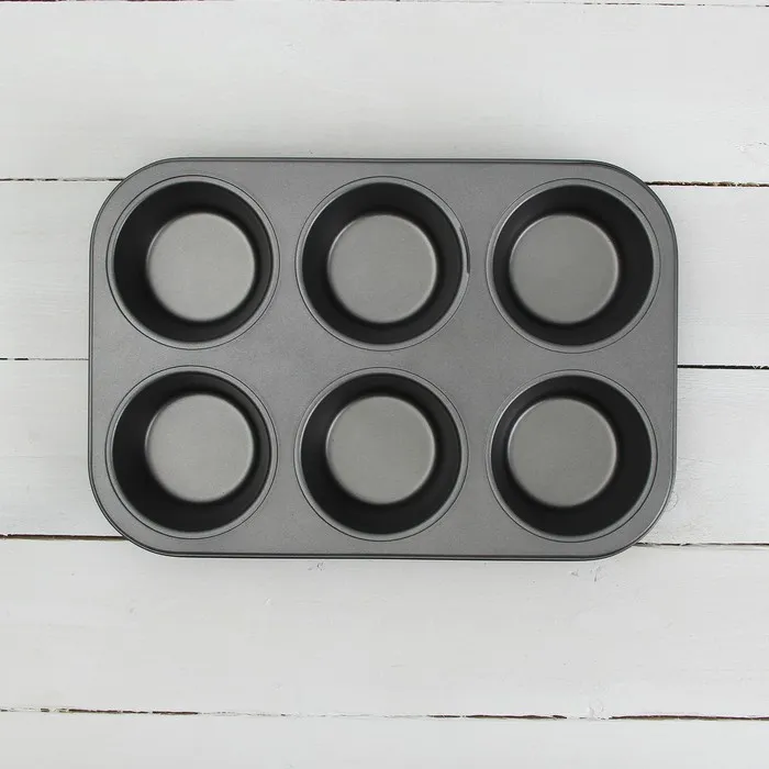 Форма для выпечки Доляна «Жаклин. Круг», 31,6×21,8×3,5 см, 6 ячеек, антипригарное покрытие, цвет чёрный — Характеристики