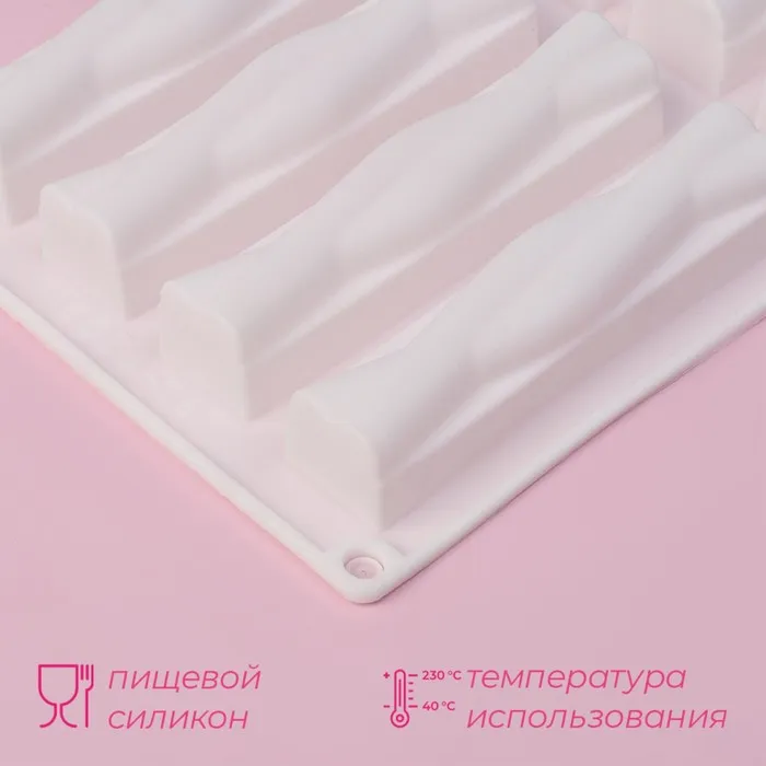 Форма для выпечки Доляна «Жгуты», силикон, 28.5×16.5×2.3 см, 8 ячеек (12×2.7×2.3 см), белая — Характеристики