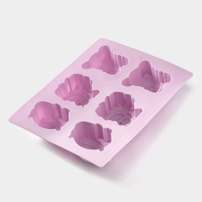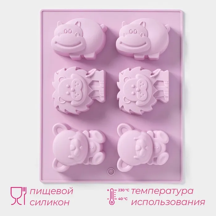 Форма для выпечки Доляна «Животные», силикон, 24×20 см, 6 ячеек (6.5×4.5 см), МИКС — Характеристики