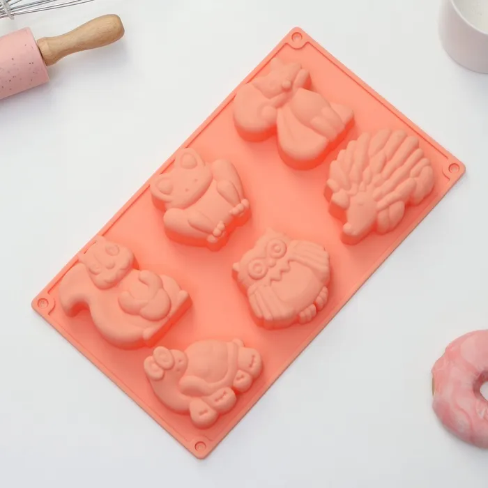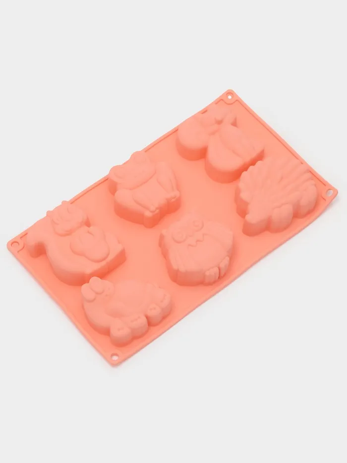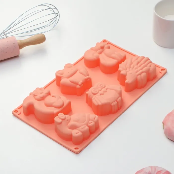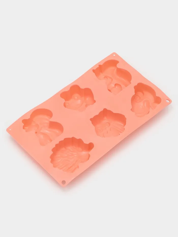 Форма для выпечки Доляна «Животные. Зоопарк», силикон, 29×17×3 см, 6 ячеек (7.5×5.5 см), оранжевая — Характеристики
