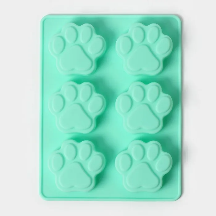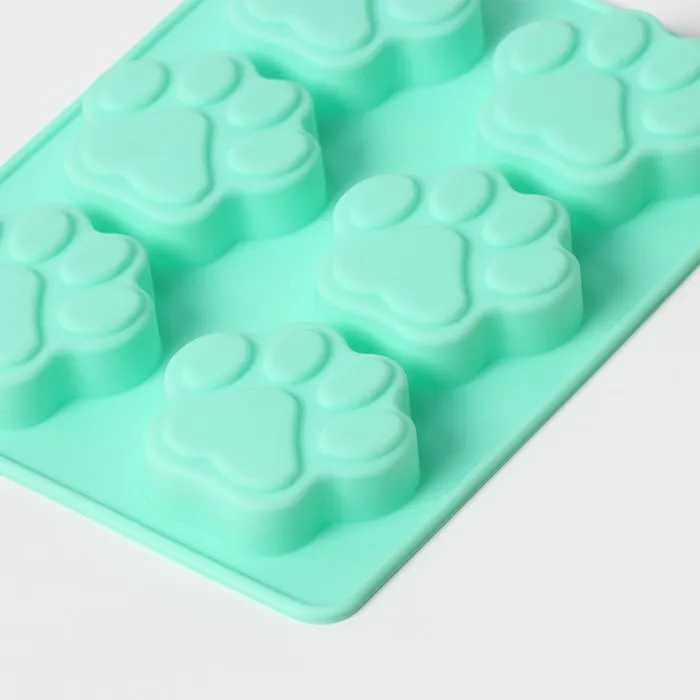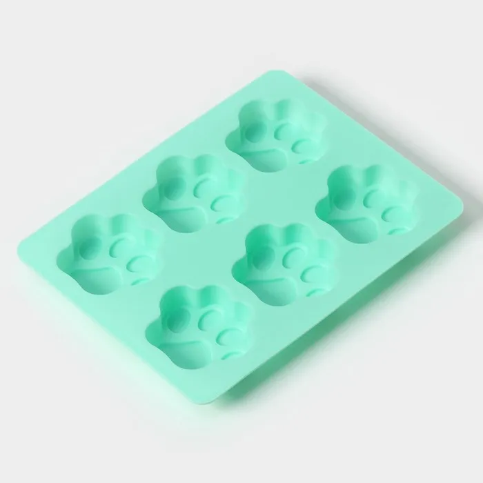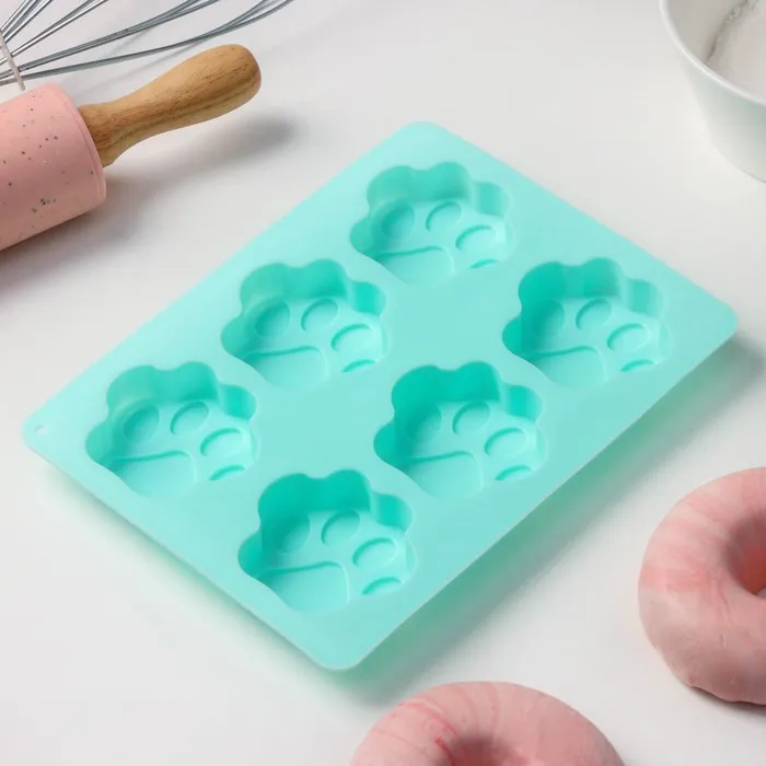 Форма для выпечки Доляна «Животные.Лапка», силикон, 18×13,8 см, 6 ячеек (5×5,4 см), бирюзовая — Характеристики