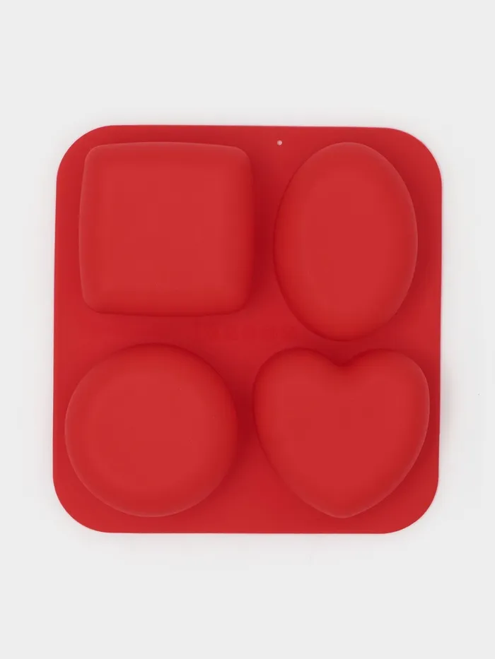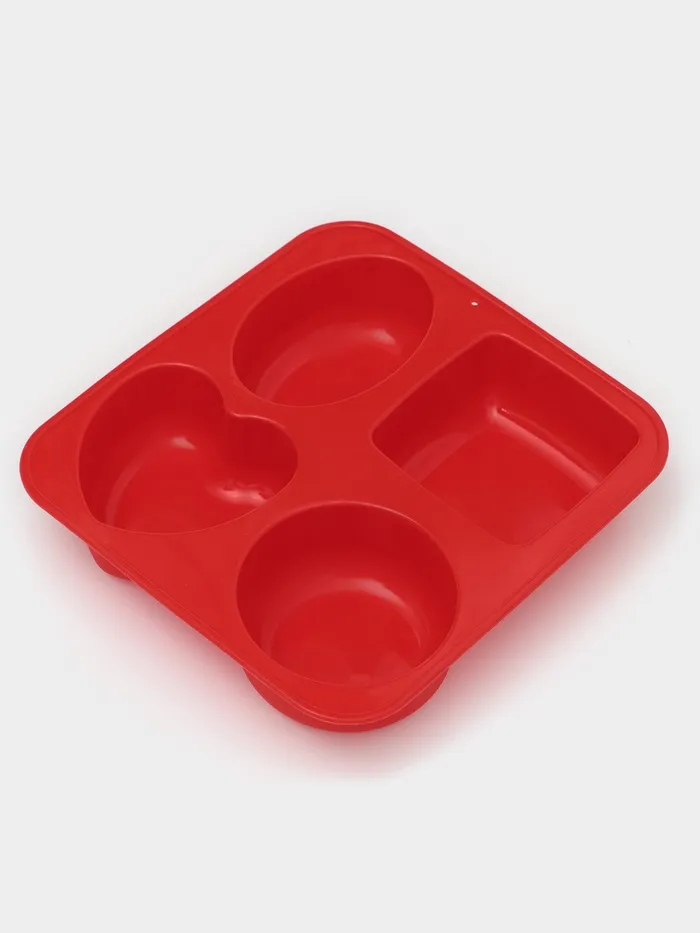 Форма для выпечки «Фигуры и сердце», 16×17 см, 4 ячейки (7×7 см), силикон, МИКС — Характеристики