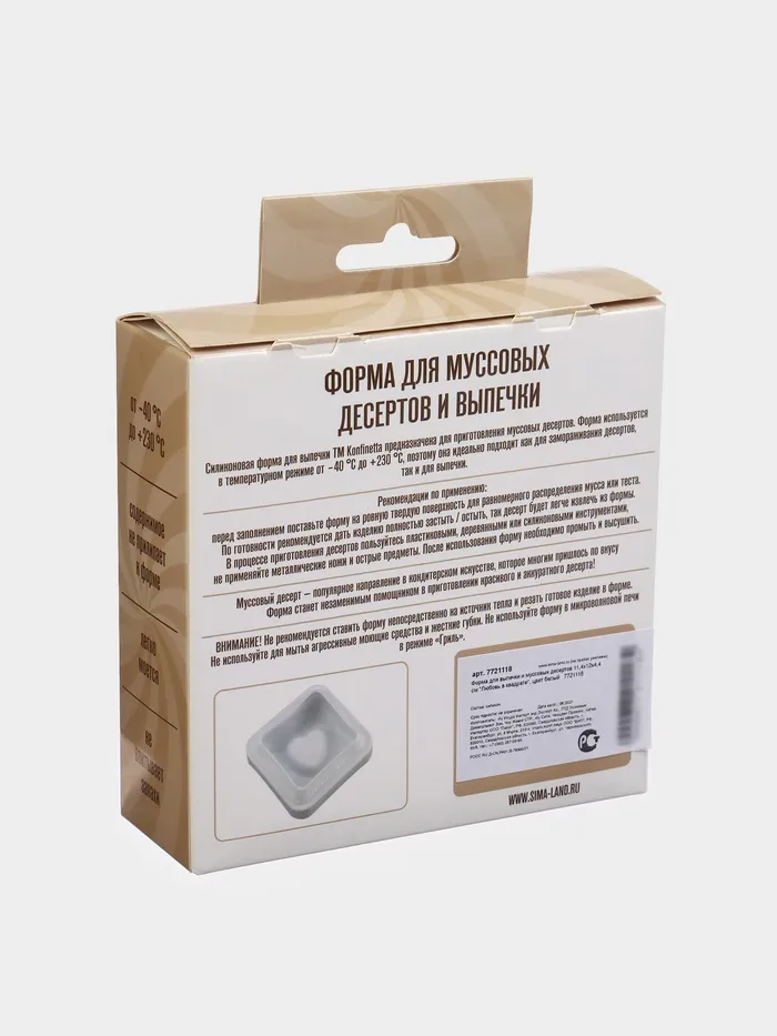 Форма для выпечки и муссовых десертов KONFINETTA «Любовь в квадрате», силикон, 11.4×12×4.4 см, белая — Характеристики