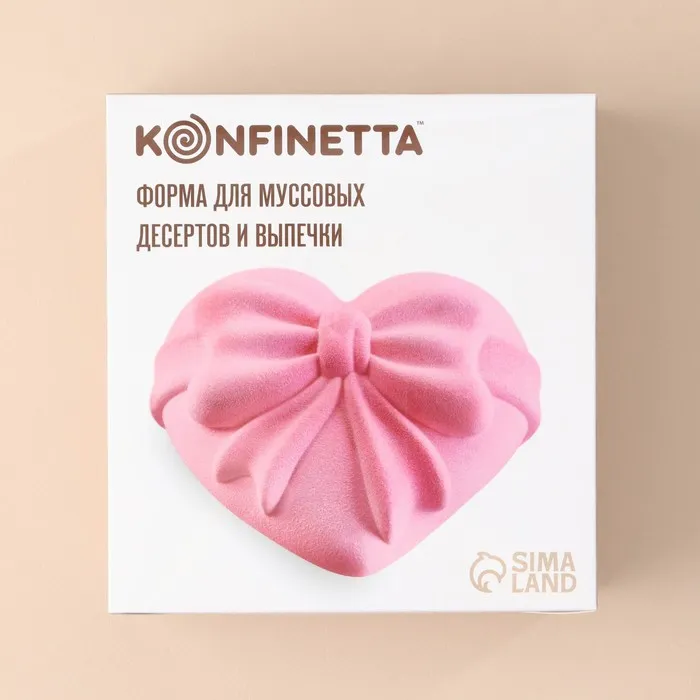Форма для выпечки и муссовых десертов KONFINETTA «Сердце с бантом», 19×17×6.5 см, силикон, белая — Характеристики