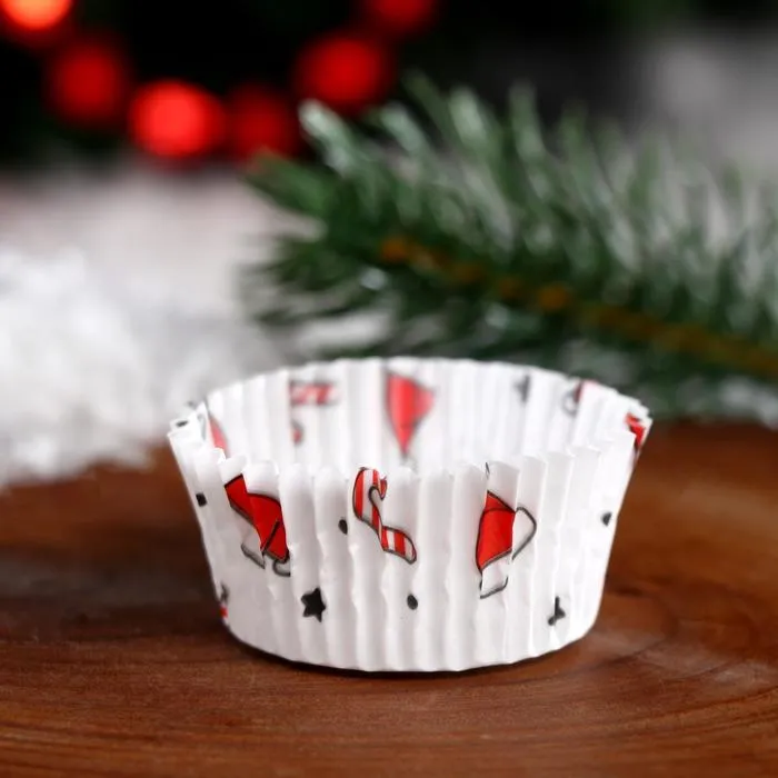 Форма для выпечки капкейков и маффинов, бумажная, круглая "Новый год", 3.5×2 см — Характеристики
