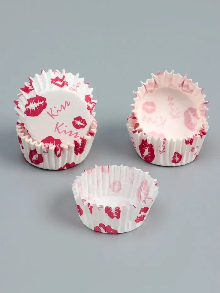 Форма для выпечки капкейков и маффинов, бумажная, круглая «Поцелуи» белая, 3.5×2 см