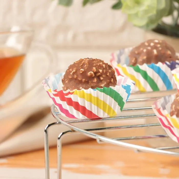 Так же они являются беспроигрышным вариантом для упаковки и привлекательной подачи сладостей на праздничный или фуршетный стол. Достаточно просто поместить конфету или трюфель в бумажную тарталетку и положить в коробку или на поднос.