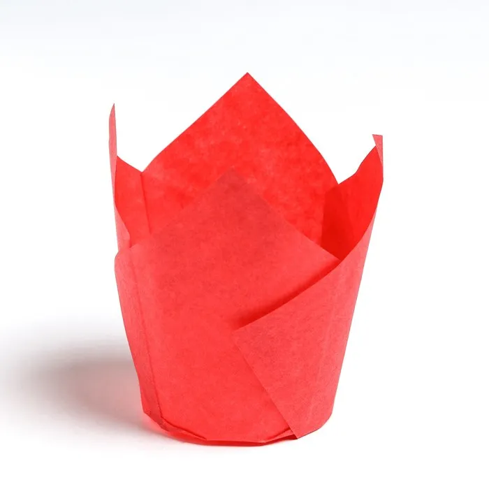Форма для выпечки капкейков и маффинов, бумажная «Тюльпан», красный, 5×8 см — Характеристики