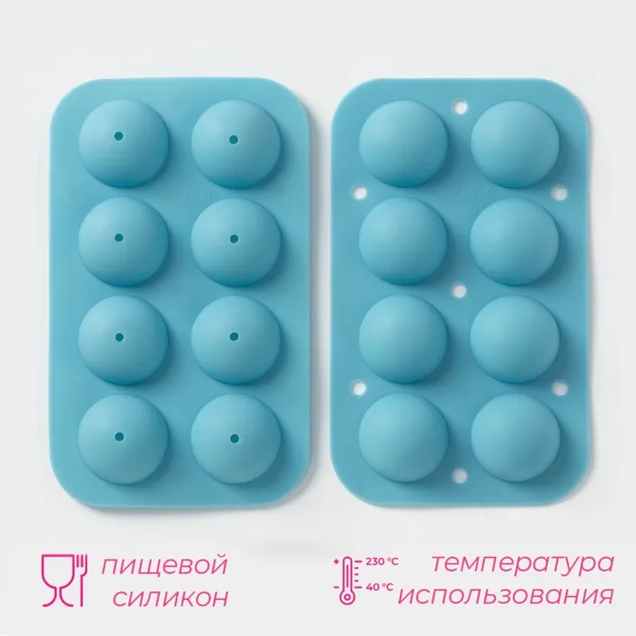 Форма для выпечки «Кейкпопс», силикон, 19.5×11.7×3.5 см, 8 ячеек, 2 части, с палочками, МИКС — Характеристики