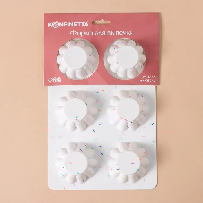 Форма для выпечки KONFINETTA «Сладости. Пудинг», силикон, 25.8×17.8×3 см, 6 ячеек (d=7 см), белая — Характеристики