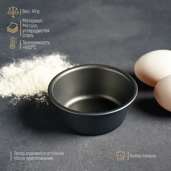 Форма для выпечки «Круг. Жаклин», 9×4 см, антипригарное покрытие, чёрная — Характеристики