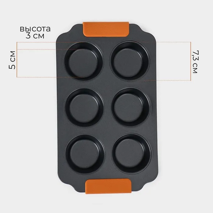 Форма для выпечки Magistro «French Bakery. Круг», 30.5×18×3 см, 6 ячеек, антипригарное покрытие — Характеристики