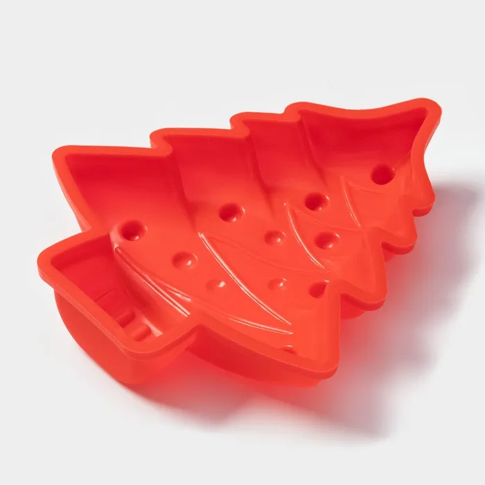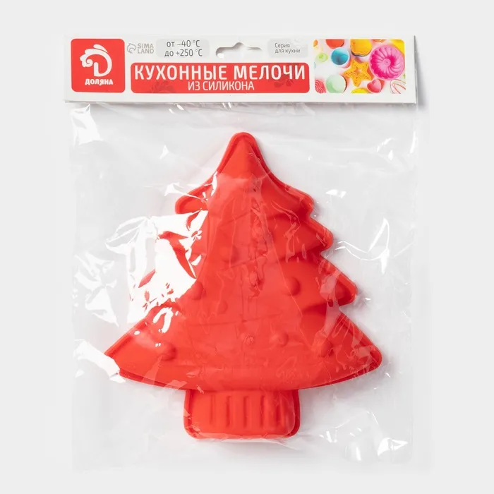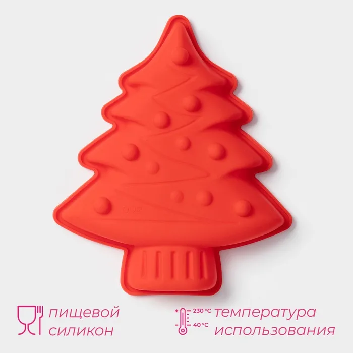 Форма для выпечки новогодняя Доляна «Ёлочка с гирляндой», силикон, 18×14.5×3.5 см, красная — Характеристики