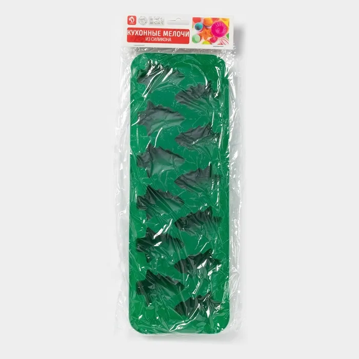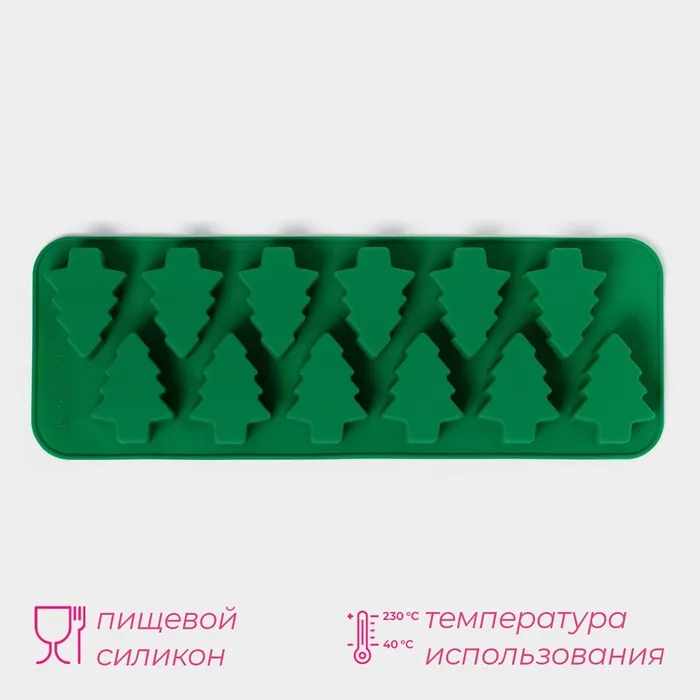 Форма для выпечки новогодняя Доляна «Ёлочка», силикон, 32.5×11.5 см, 12 ячеек, зелёная — Характеристики