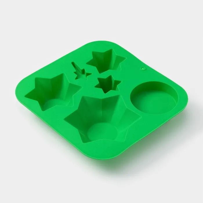 Форма для выпечки новогодняя Доляна «Новогодний набор», силикон, 20.5×22×3.5 см, 6 ячеек, зелёная — Характеристики