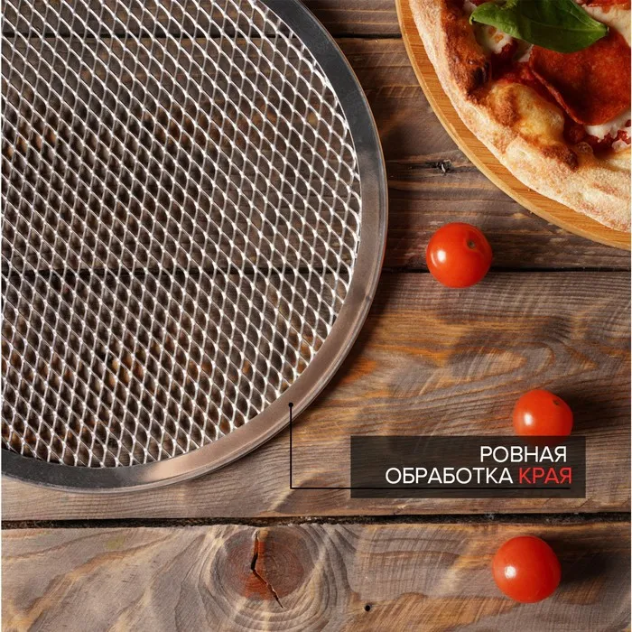 Главная задача сетки для выпечки – приподнимать основу из теста, что позволяет горячему воздуху свободно циркулировать в ходе приготовления пиццы в печи. Это способствует равномерному пропеканию теста и образованию хрустящей корочки.