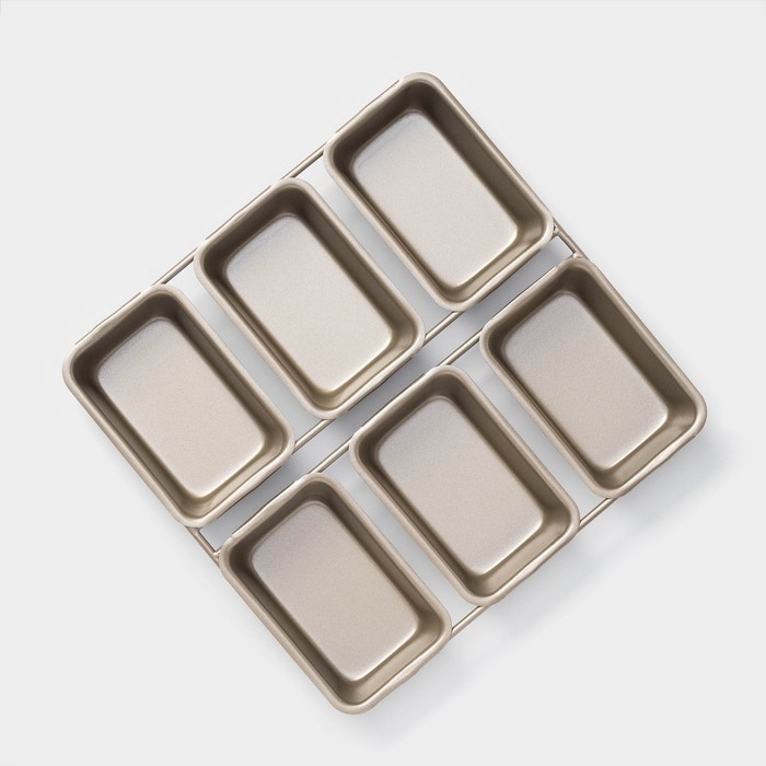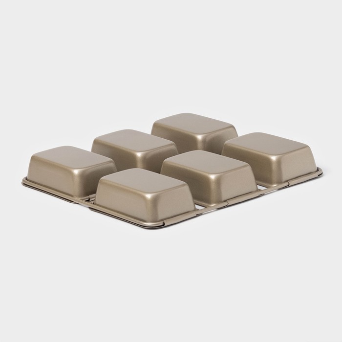 Форма для выпечки «Прямоугольник. Рэнди», 21,5×21 см, 6 ячеек, антипригарное покрытие, цвет золотой — Характеристики