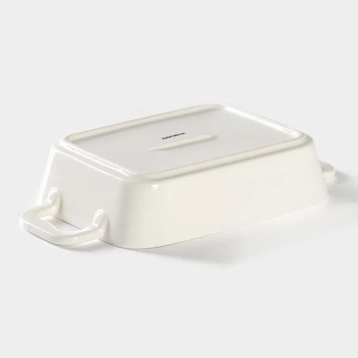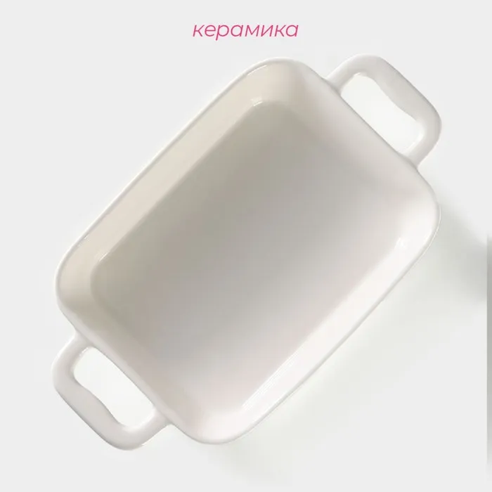 Форма для запекания Доляна «Долли», 900 мл, 27.5×15.5×5.3 см (с ручками), 20.5×15.5×5 см (без ручек), жаропрочная керамика, белая — Характеристики