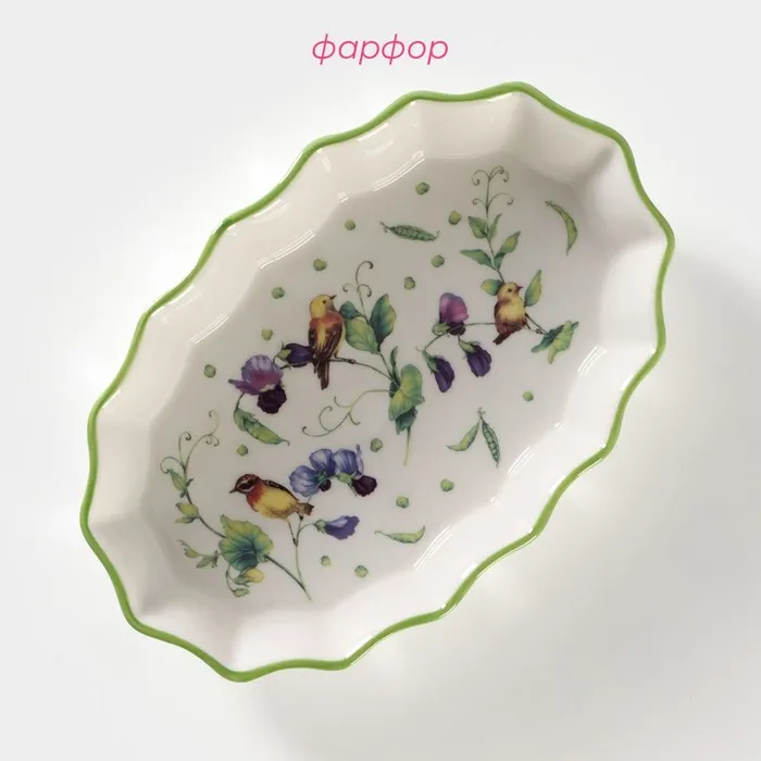 Форма для запекания Доляна «Зелёный сад», 360 мл, 19.5×12.5×3.5 см, фарфор, белая — Характеристики