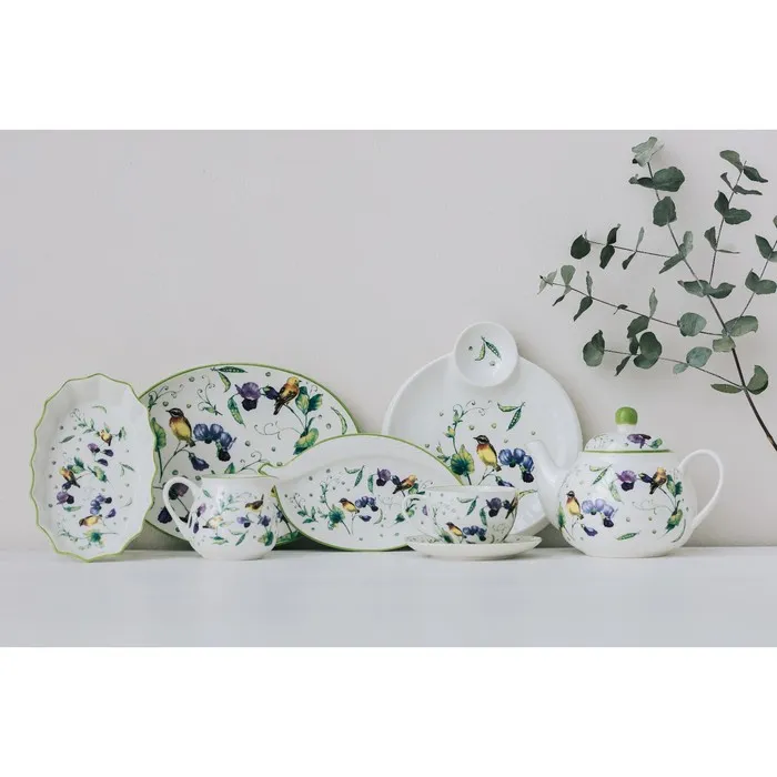 Посуда серии «Зелёный сад» от торговой марки Доляна обладает оригинальным «летним» дизайном. Изделия гармонично дополнят сервировку стола, а также прекрасно подойдут в качестве подарка. Посуда выполнена в приятных тонах, что позволит вписать её практически в любой интерьер.