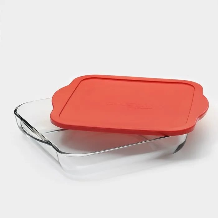 Форма для запекания Paşabahçe Borcam, 3 л, 28,2×31,7 см, стекло, с красной крышкой, прозрачная — Характеристики