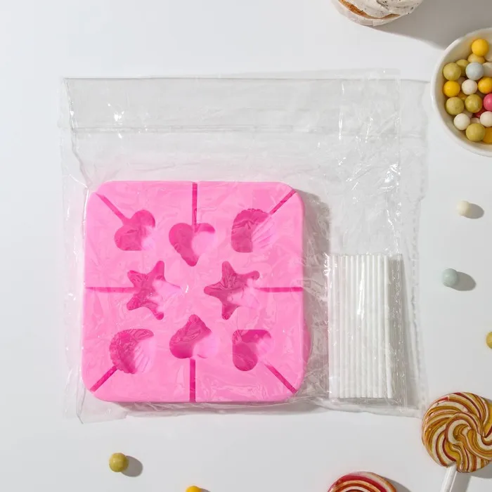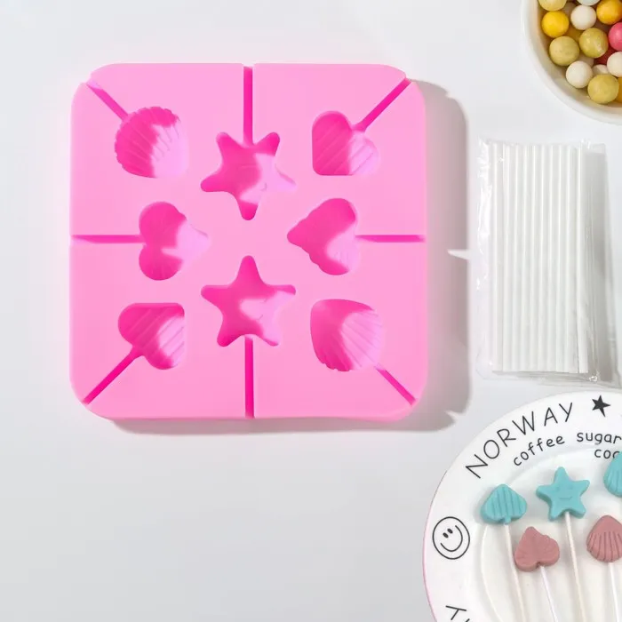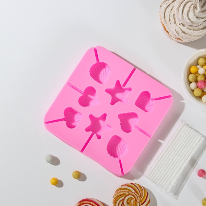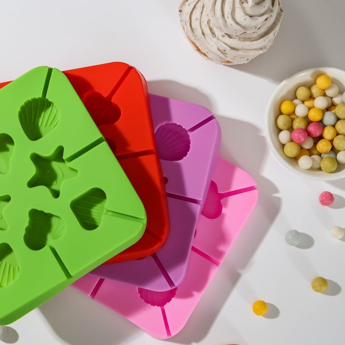 Форма силиконовая для леденцов «Морской берег», 12,5×12,5×1,5 см, 8 ячеек, с палочками, цвет МИКС — Характеристики