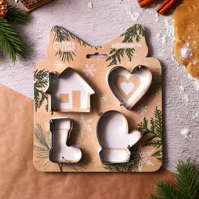 Набор форм для печенья «Уют» — идеальный выбор для любителей создавать новогодние шедевры! Эти металлические формы включают в себя 4 разных дизайна, которые помогут вам приготовить вкусное и красивое печенье к празднику.