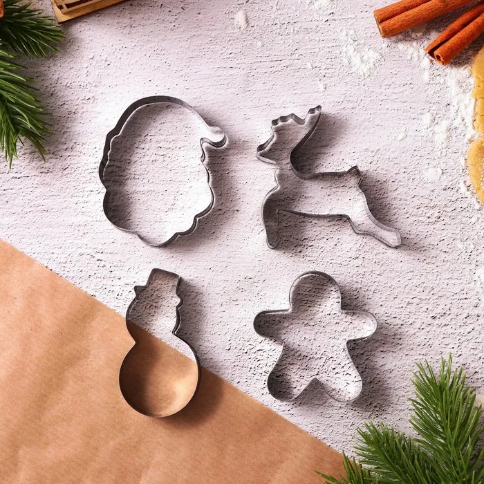 Формочки для печенья новогодние «Зимняя сказка», набор 4 шт., нержавеющая сталь — Характеристики