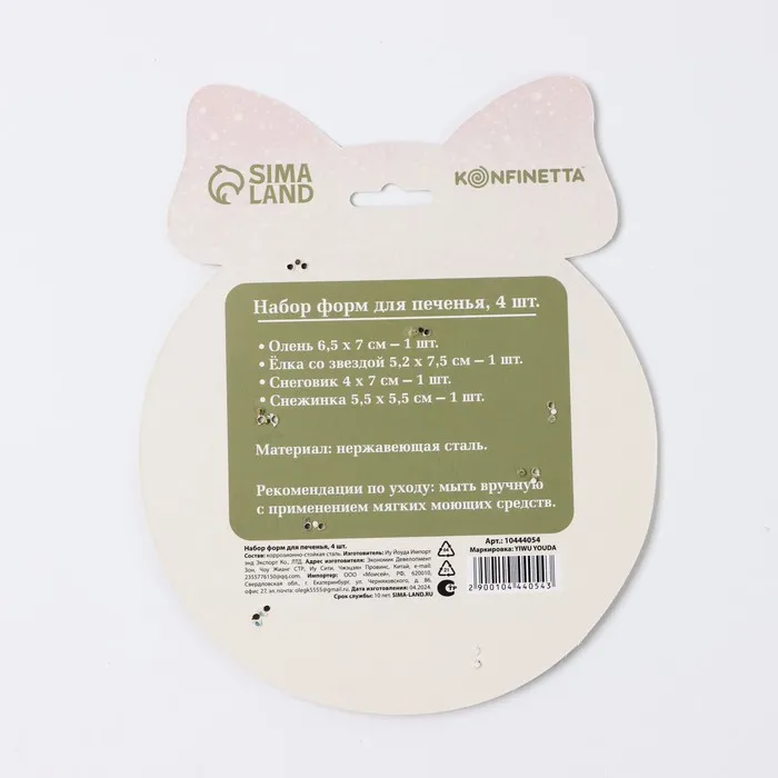 Формочки для печенья «Уютная сказка», 4 шт., нержавеющая сталь — Характеристики