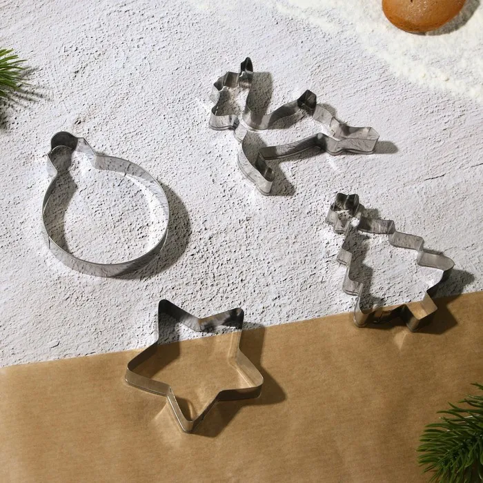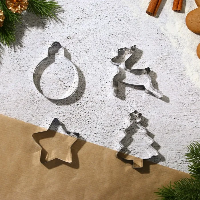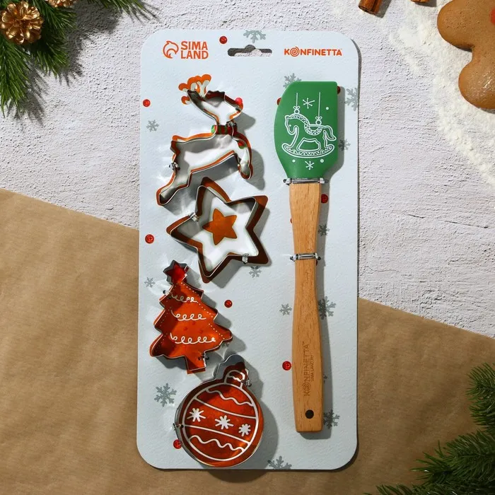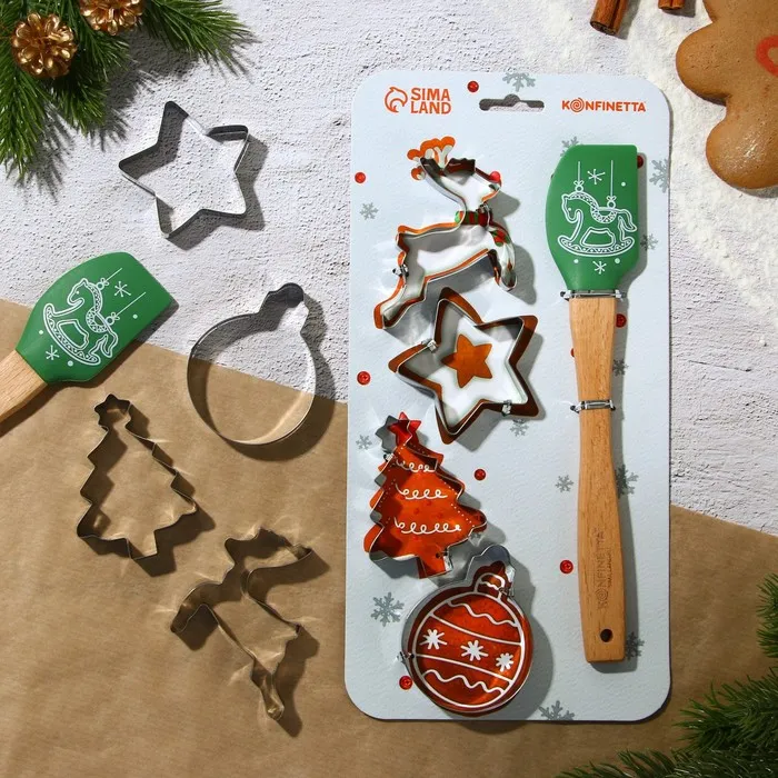 Формочки для выпечки печенья «Новогодние сладости», 4 шт., в наборе силиконовая лопатка — Характеристики
